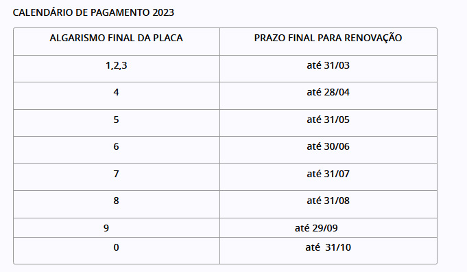 O diretor-geral da Autarquia, Paulo Higo Ferreira de Almeida esclarece que, o Calendário de Licenciamento Anual está de acordo com o algarismo final da placa veicular, nos limites fixados de março a outubro. “Aos veículos com placas finais 1, 2 e 3, o licenciamento vence no dia 31 de março”, destacou.