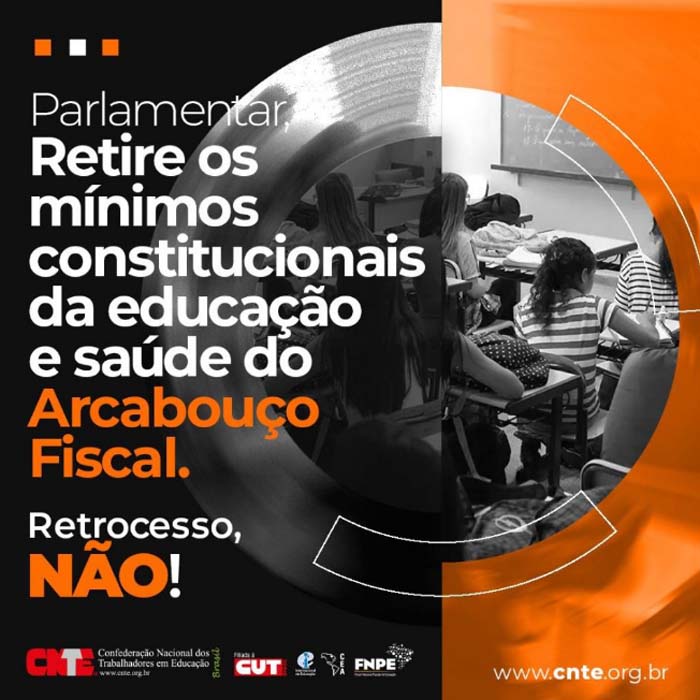 Diante desse cenário, a CNTE e o Sintero convoca os trabalhadores e trabalhadoras em educação para que pressionem os deputados e deputadas federais de suas respectivas localidades, solicitando a manutenção das exceções de despesas no arcabouço fiscal, de forma a evitar que o cenário de escassez imposto pela Emenda Constitucional º 95 continue a atingir a Educação e impeça a execução do Plano Nacional de Educação (PNE) e todas as suas metas, que necessitam de recursos para serem efetivadas.