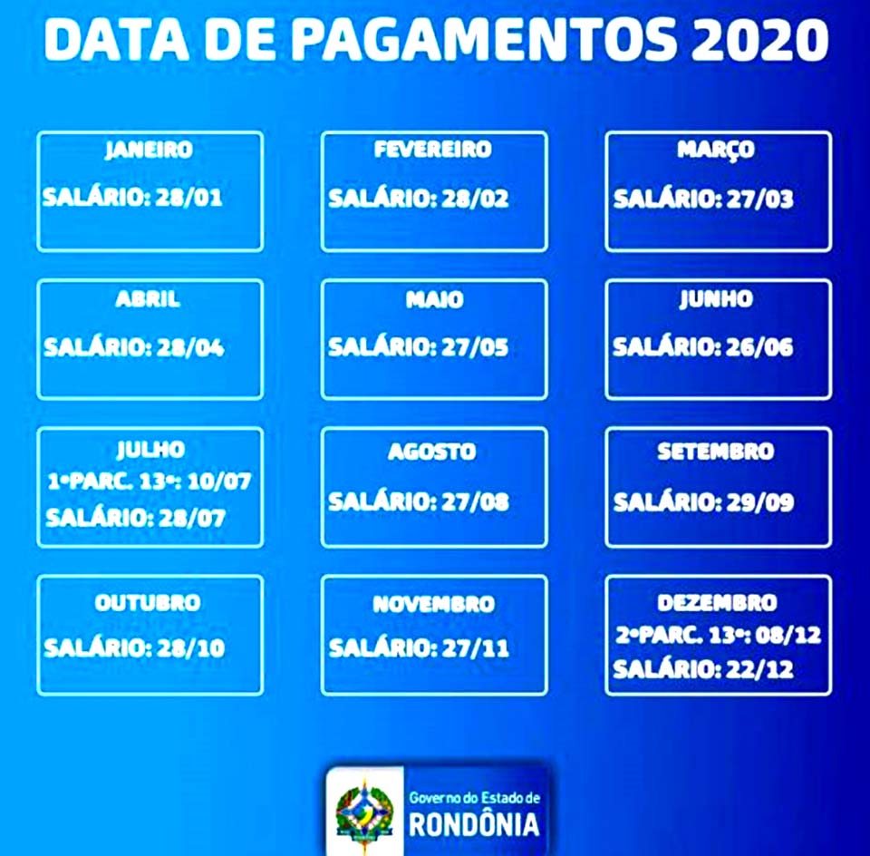 Este é o calendário de pagamentos para 2020, respeitados os processamentos de dados: