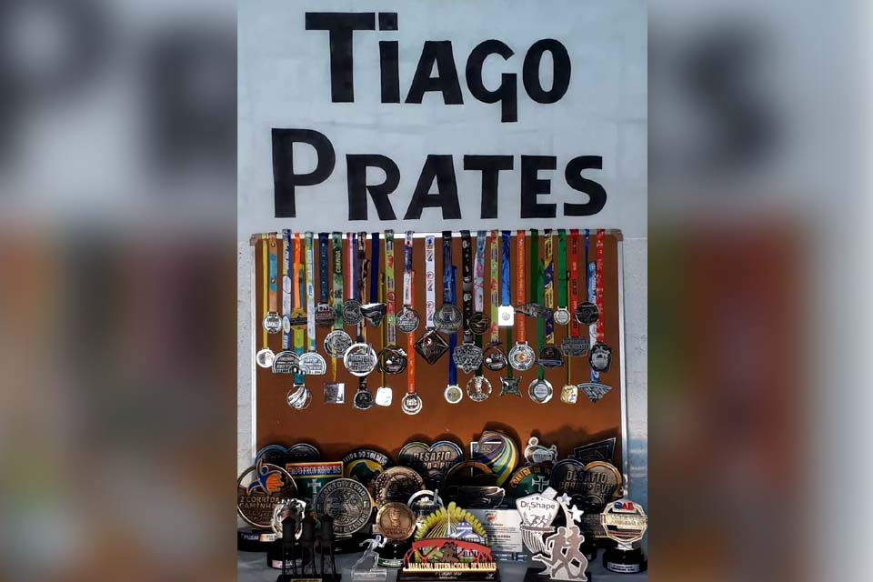 - Com muito treino e muita dedicação, horas, dias, semanas e meses, consegui conquistar todos esses troféus e medalhas - disse Tiago Prates, corredor profissional.