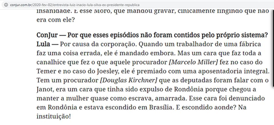 Ocorre que Lula não faz apenas um retrospecto histórico sobre o ex-procurador, mas acrescenta, ainda, grave acusação contra a antiga instituição de seu acusador.
