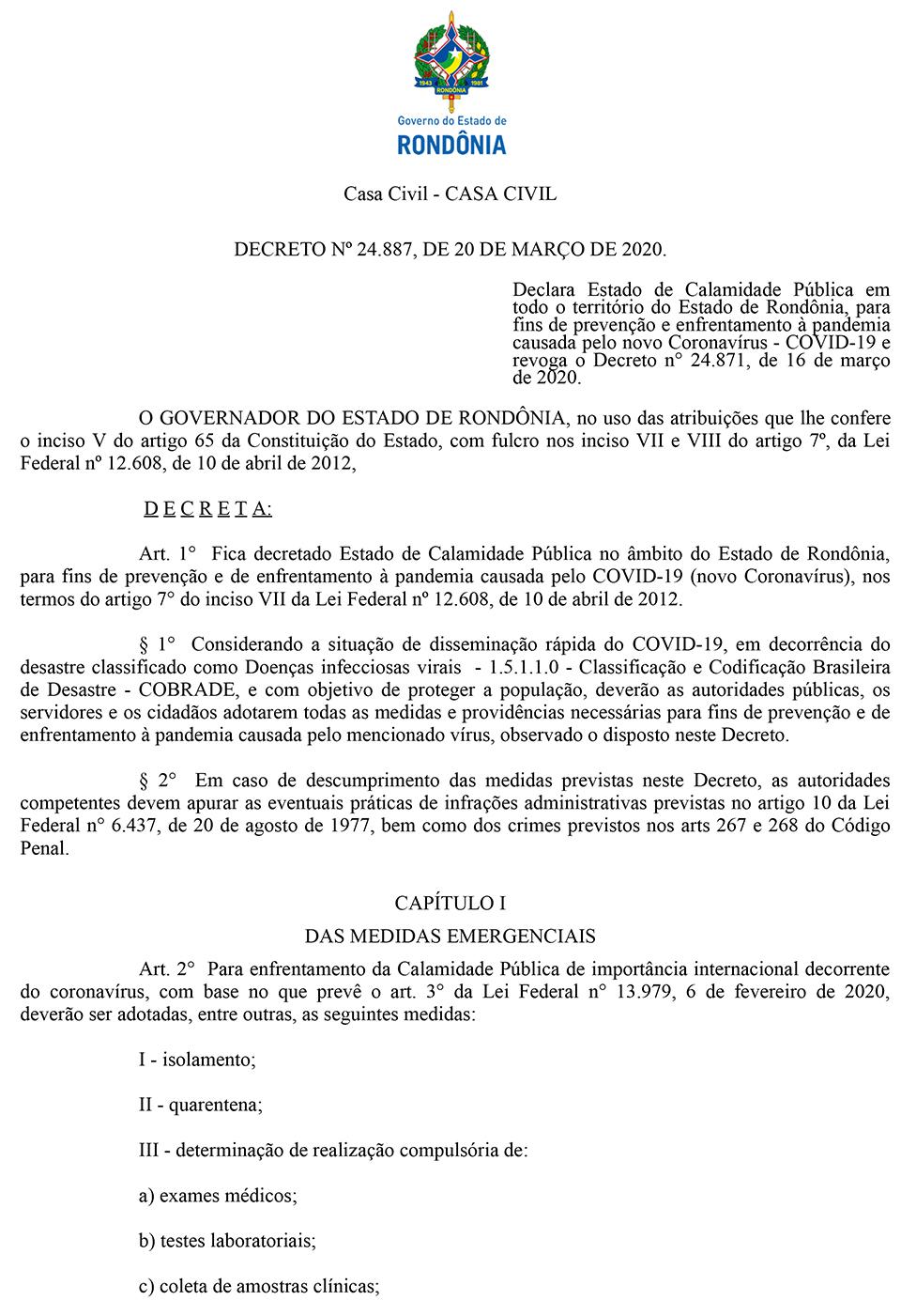 Porto Velho, RO — A ordem em todo o Planeta Terra é: fique em casa! Para conter o contágio do Coronavírus (COVID-19/SARS-CoV-2), as recomendações do poder público estão postas à mesa; aliás, mais do que apontamentos, Rondônia já decretou o Estado de Calamidade Pública (veja o documento ao fim do editorial), embora de maneira tardia, deixando claras as restrições promovidas ao direito de locomoção e/ou reunião.