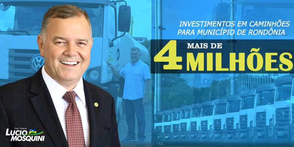 O Deputado Federal Lucio Mosquini, entregou nesta segunda-feira (20), 09 caminhões caçambas e 03 caminhões pipas que servirão para beneficiar os municípios, e contribuir com as melhorias na malha viária, bem como o transporte das produções agrícolas de Rondônia.
