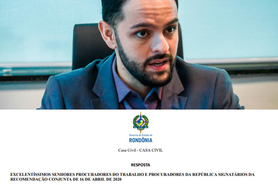 "Diante disso, espera-se que o Ministério Público Federal tenha a mesma atitude patriota e altruísta em ajudar o Estado de Rondônia no enfrentamento da pandemia em questão ao invés de apenas solicitar informações genéricas e sem qualquer objevo aparente, tumultuando, assim, a atuação dos abnegados servidos públicos, os quais deixam de atuar em sua avidade fim de combate à COVID-19 para promover respostas genéricas aos órgãos de controle. Assim, realmente todos os envolvidos estarão atuando de maneira articulada".