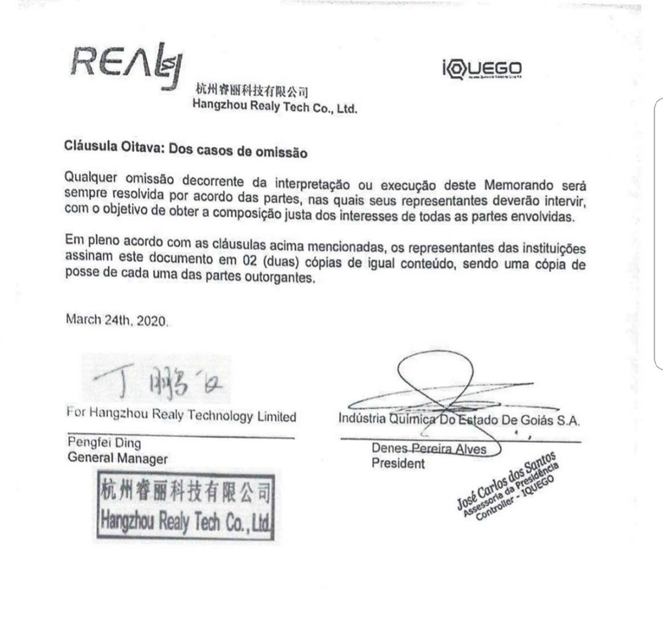 "A declaração é: a Iquego assinou, sim, um protocolo de intenções com a empresa, como assinou com várias outras, mas não fez negócio. Ela está desautorizada de utilizar o nome da empresa porque nós não fizemos negócios. Eles nos colocaram como parceiros. Nós não somos parceiros",concluiu dos Santos.