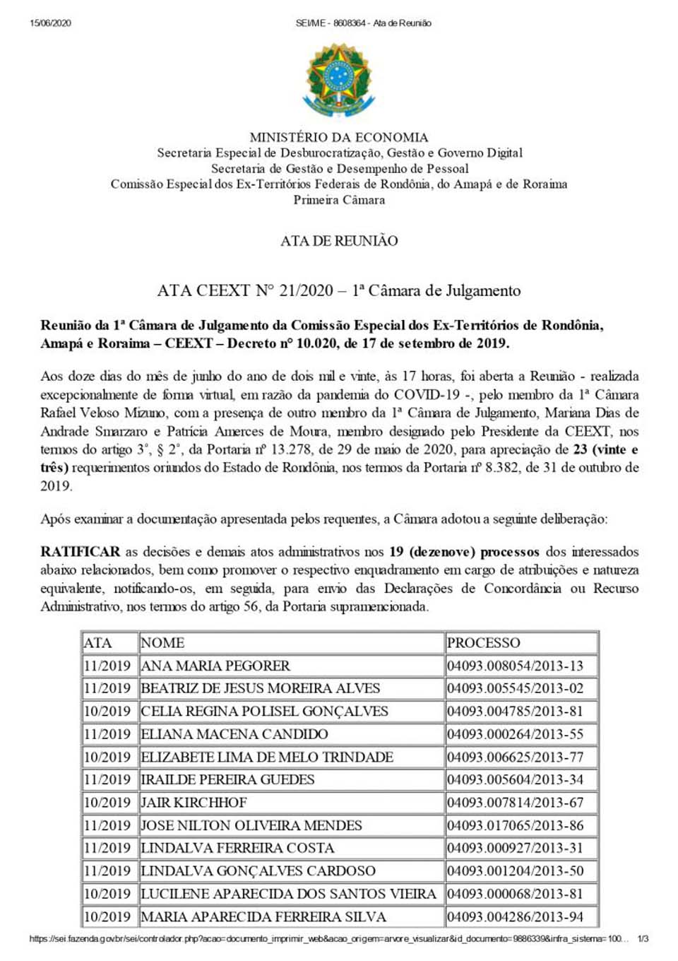 A CEEXT também ratificou processos de 19 servidores de Rondônia. Estes servidores devem estar atentos as suas notificações e, em seguida, devem enviar a Declaração de Concordância ou Recurso Administrativo, conforme for o caso.