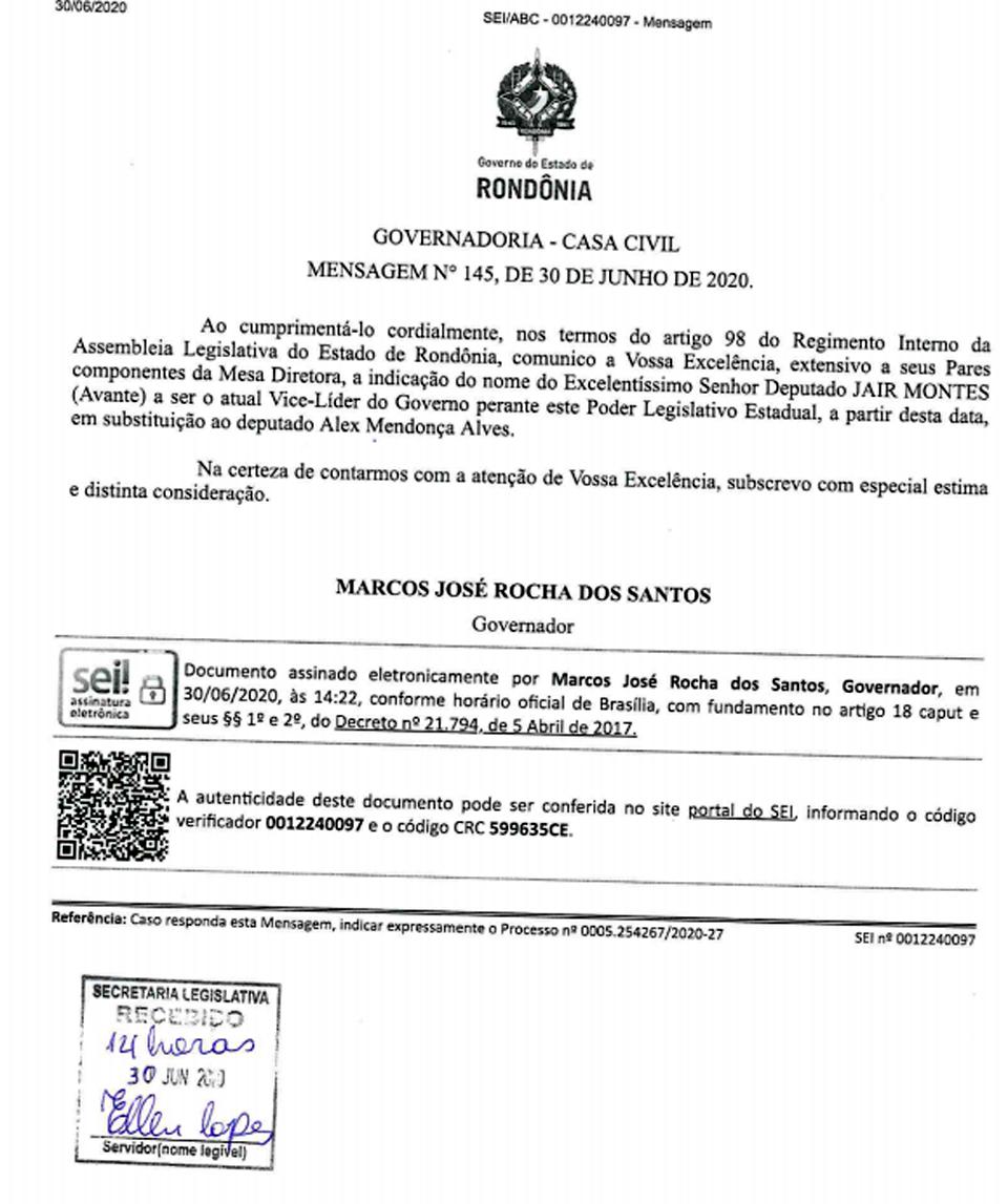 Porto Velho, RO – O deputado estadual Jair Montes, do Avante, assumiu o lugar do colega Alex Redano (Republicanos) e é o novo vice-líder do governo Coronel Marcos Rocha, sem partido, na Assembleia Legislativa (ALE/RO).