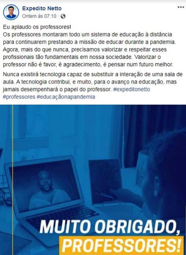 Os professores montaram todo um sistema de educação à distância para continuarem prestando a missão de educar durante a pandemia. Agora, mais do que nunca, precisamos valorizar e respeitar esses profissionais tão fundamentais em nossa sociedade. Valorizar o professor não é favor, é agradecimento, é pensar num futuro melhor.