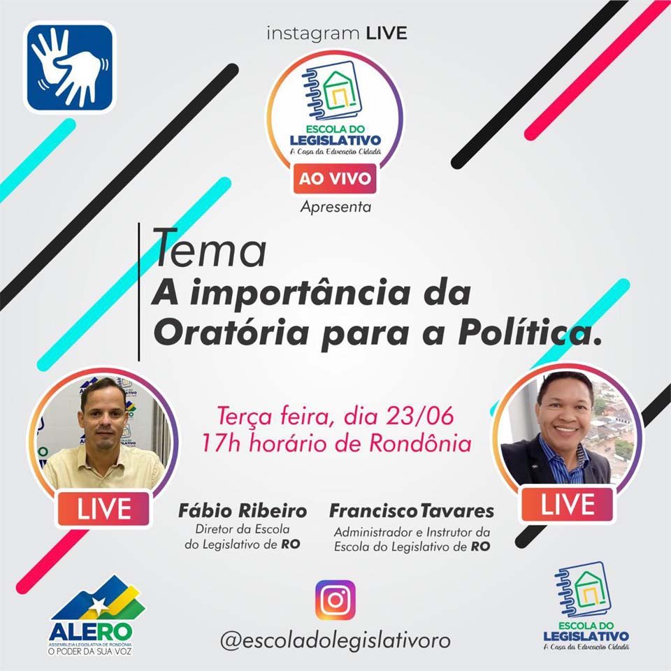 Para participar basta acessar o endereço eletrônico da escola: @escoladolegislativoro (Instagram e Facebook).