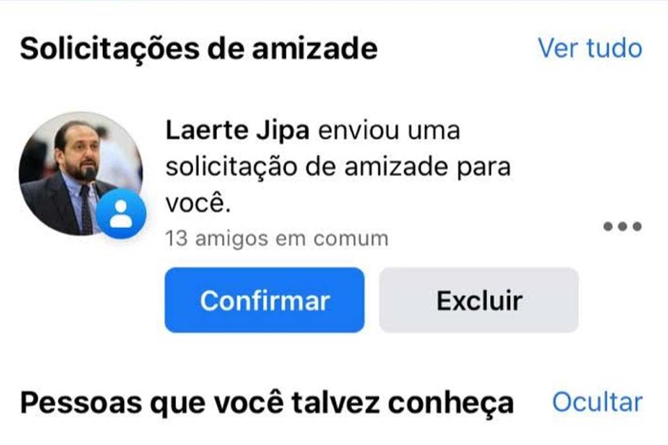 O presidente da Assembleia Legislativa, Laerte Gomes (PSDB), denunciou a criação de um perfil fakenews no Facebook com o seu nome. Nos convites que estão sendo enviados pelos criminosos aparece uma fotografia do deputado e os dizeres “Laerte Jipa”.