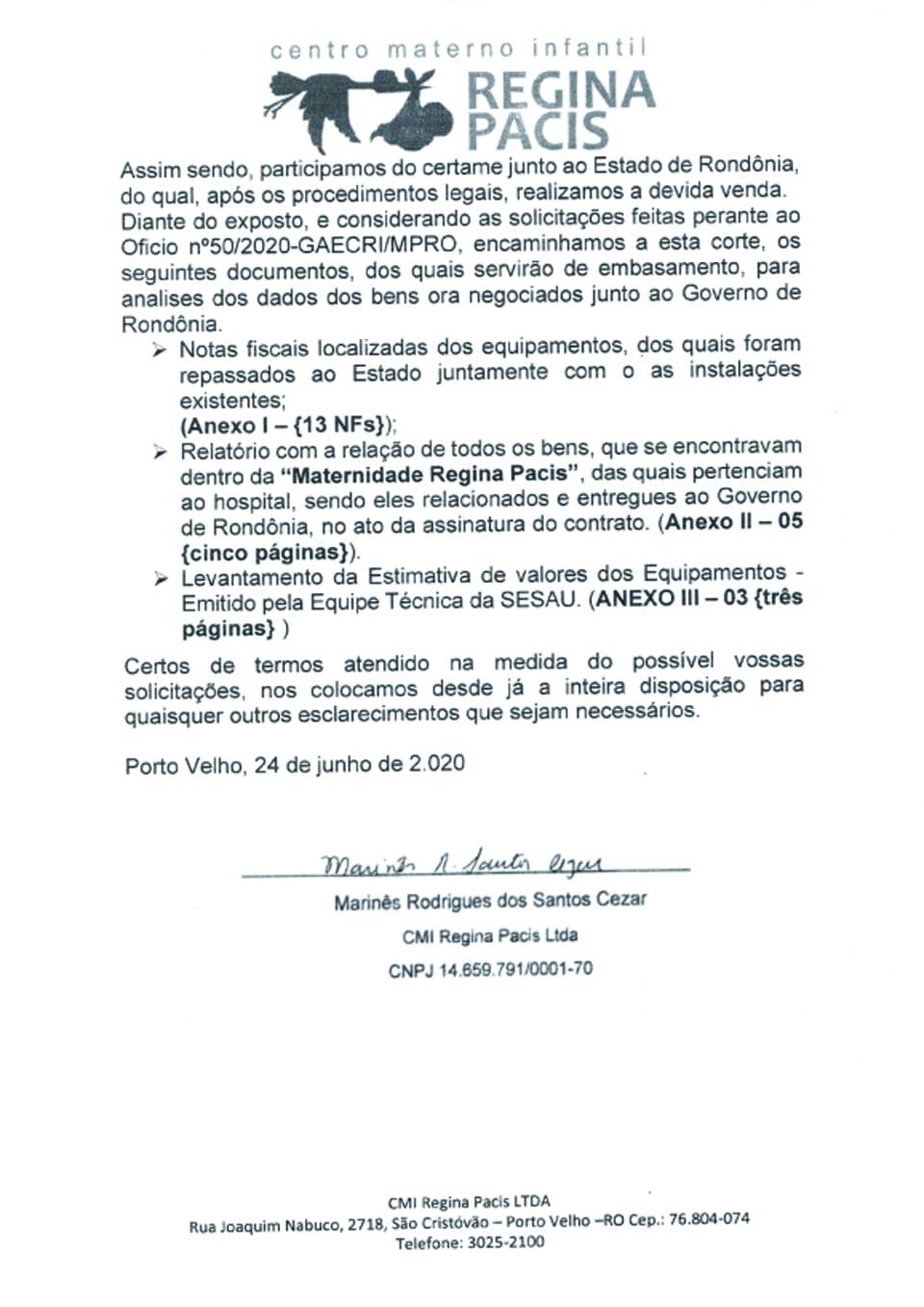 Agora, também exclusivamente, a reportagem obteve a resposta da médica Marinês Rodrigues dos Santos Cezar ao pleito apresentado pela promotora de Justiça.