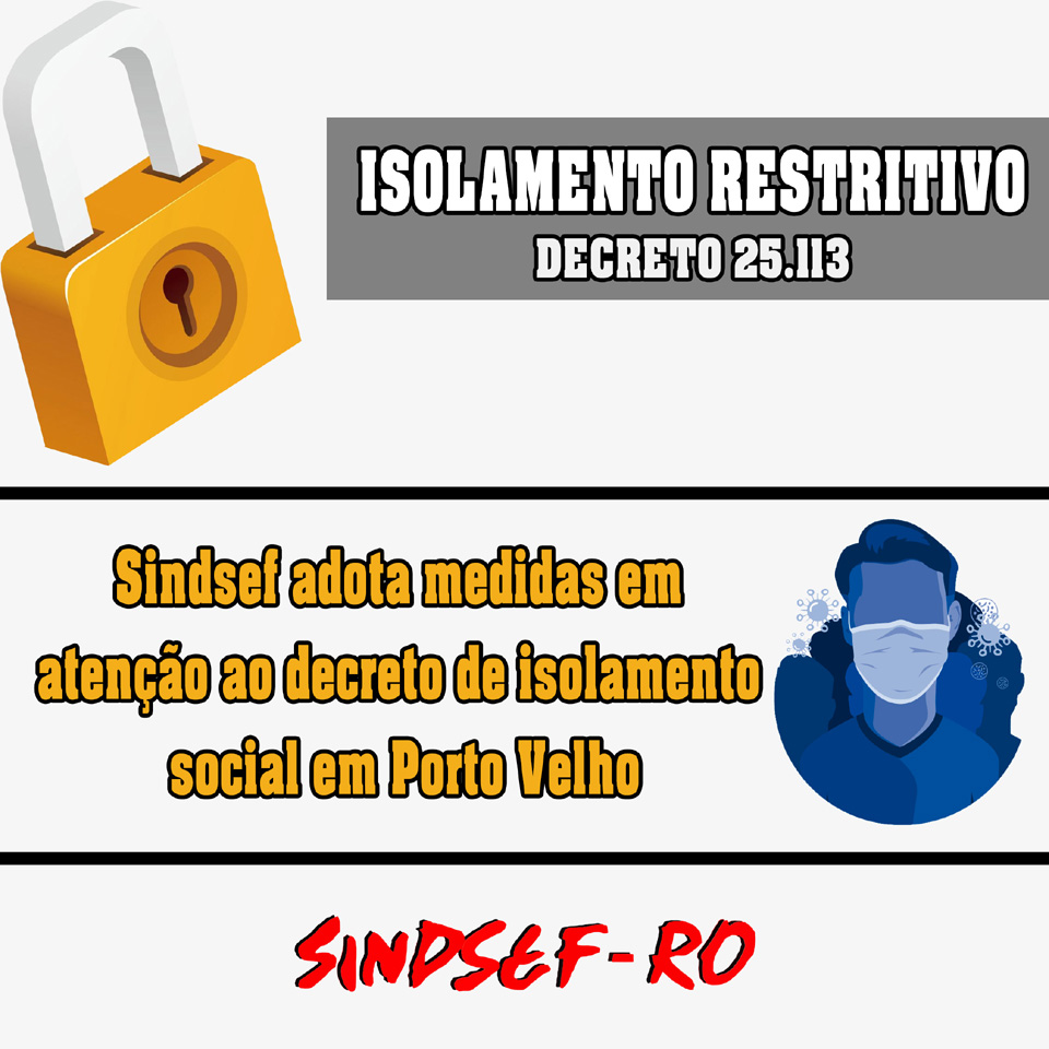 Em cumprimento ao Decreto 25.113, de 5 de junho de 2020, do Governo do Estado de Rondônia, que define medidas temporárias de isolamento social restritivo, visando a contenção do avanço da pandemia do Covid 19, nos municípios de Porto Velho e Candeias do Jamari, o Sindicato dos Servidores Públicos Federais no Estado de Rondônia- Sindsef/RO informa que não haverá atendimentos na Sede Administrativa na capital.
