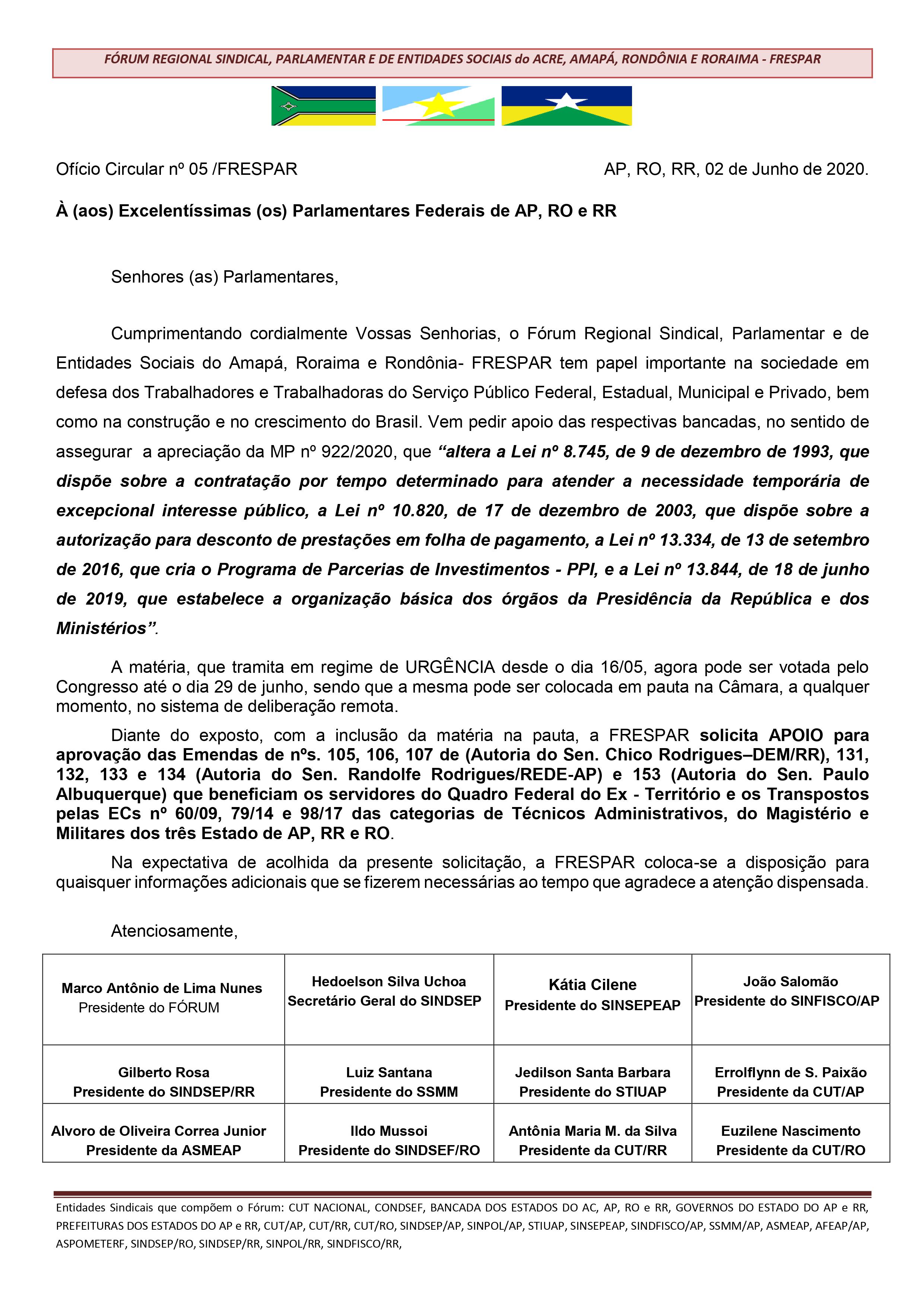 No pedido de apoio enviado a cada parlamentar, por meio do Fórum, as entidades sindicais destacam a urgência em que tramita a matéria que pode ser votada pelo Congresso até o dia 29 de junho, sendo que a mesma pode ser colocada em pauta na Câmara, a qualquer momento, no sistema de deliberação remota.