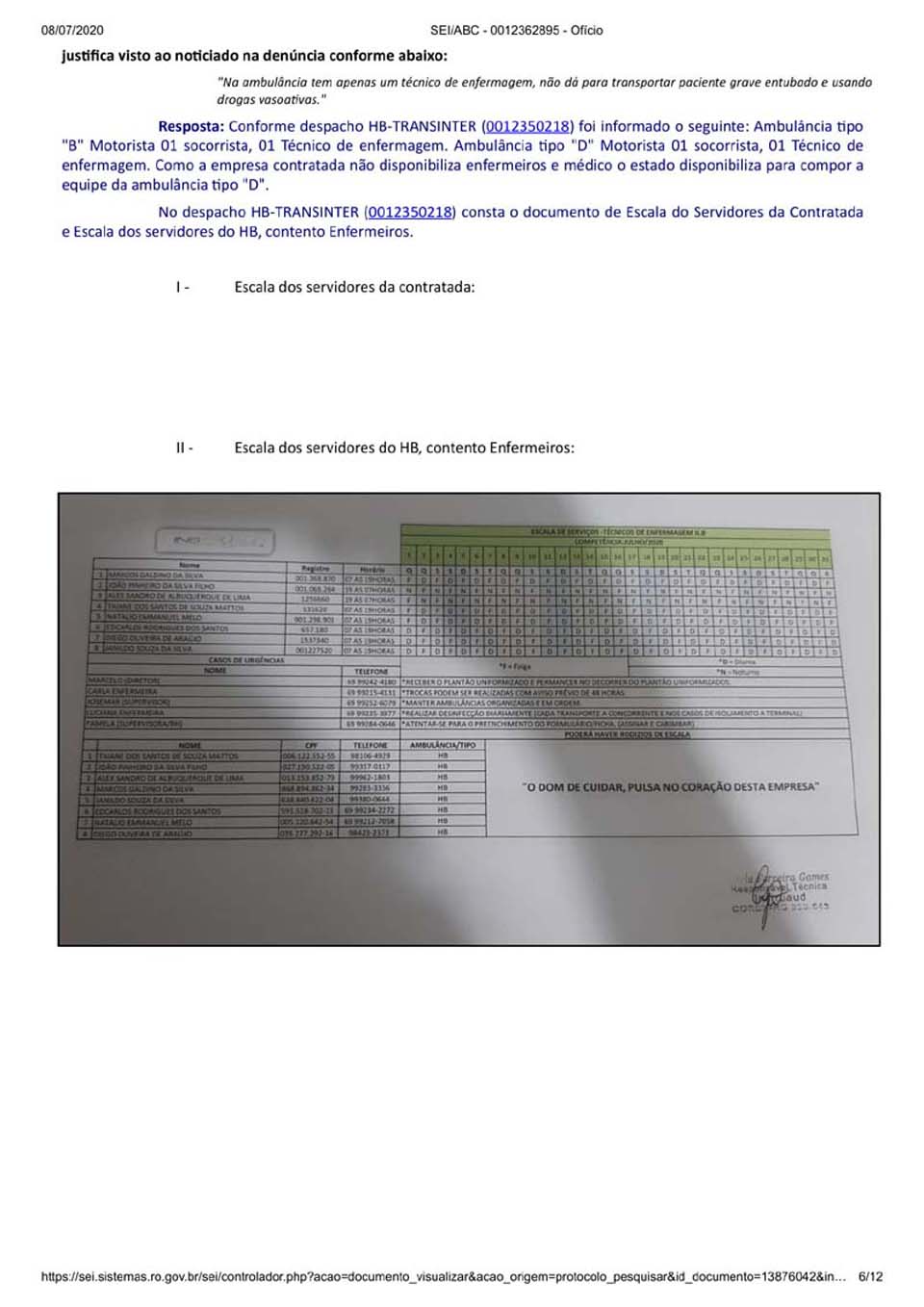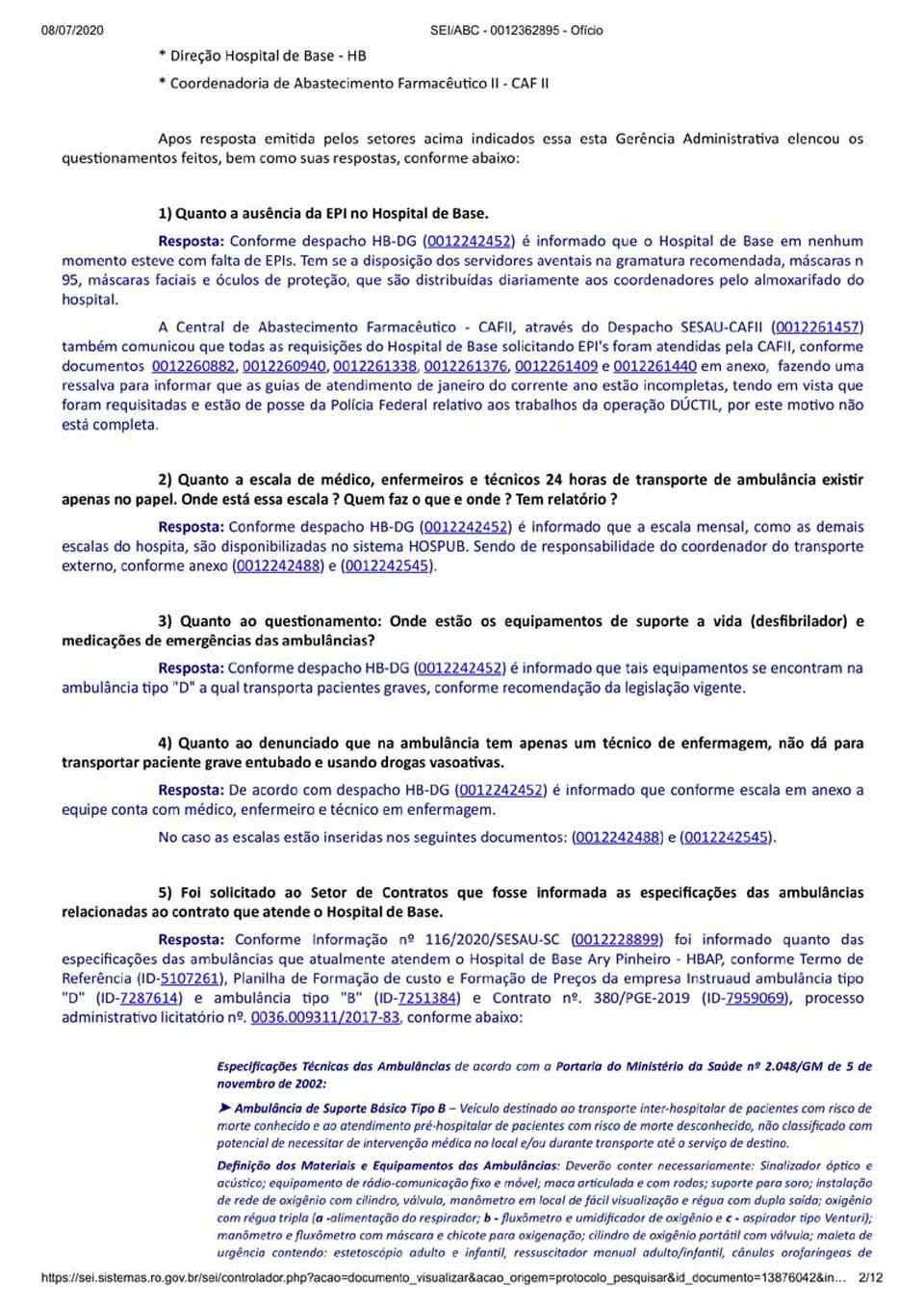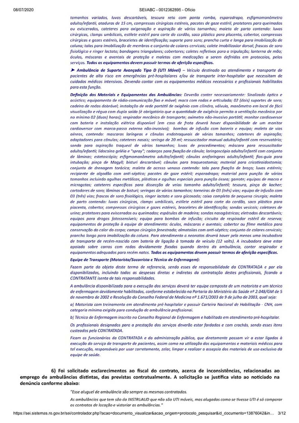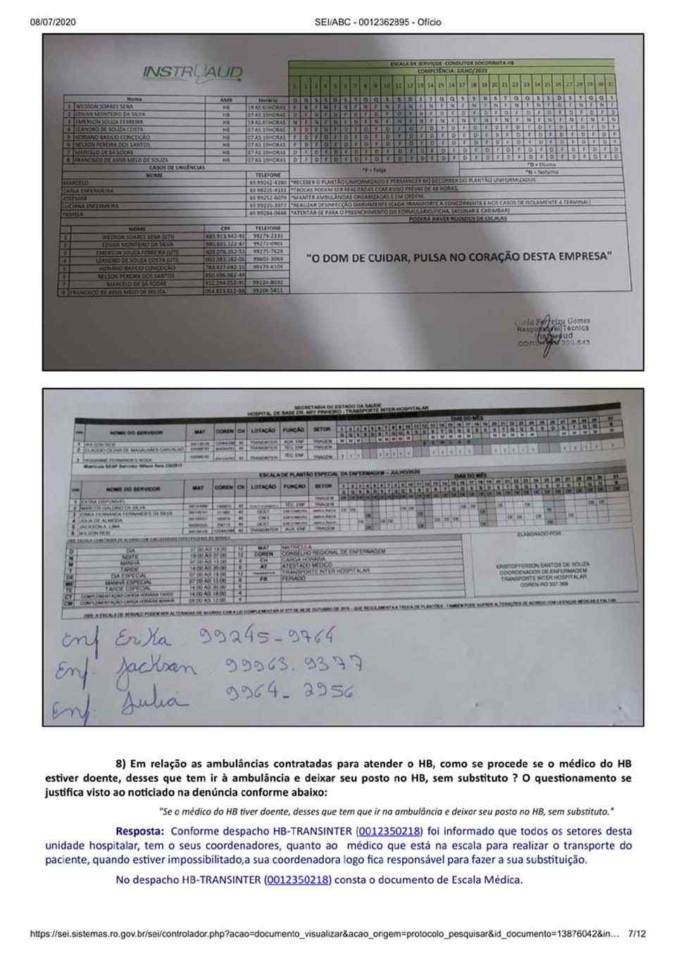 Confira a transcrição [reproduzida fielmente, incluindo erros de digitação] da denúncia a seguir, e, mais embaixo, a íntegra do documento com as respostas apresentadas pela pasta de Saúde acerca do tema: