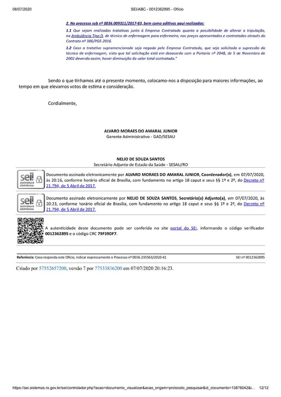 O jornal eletrônico Rondônia Dinâmica obteve, com exclusividade, documento elaborado em conjunto pelo gerente administrativo Álvaro Moraes do Amaral Júnior e Nélio de Souza Santos, adjunto do organismo específico do Estado.