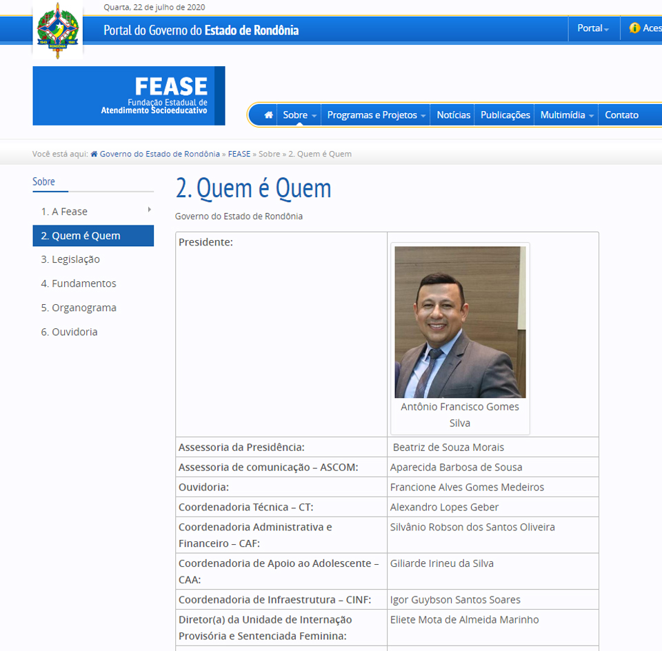 O mandatário do organismo é Antônio Francisco Gomes Silva, nomeado por Marcos Rocha em julho de 2019; de acordo com fontes consultada pelo jornal, Silva acompanha Rocha desde que o último ocupou a titularidade da Secretaria de Estado da Justiça (Sejus/RO) à época da administração Confúcio Moura (MDB).