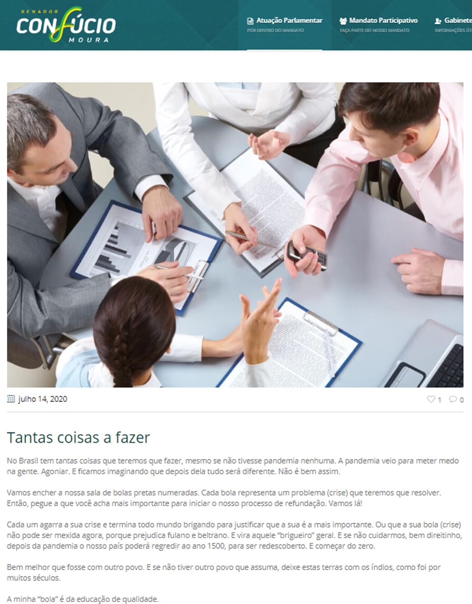 Porto Velho, RO – O senador de Rondônia Confúcio Moura, do MDB, ex-governador do Estado, não considera os indígenas como povo. Ao menos é o que dá a entender trecho de seu último texto veiculado no blog homônimo.