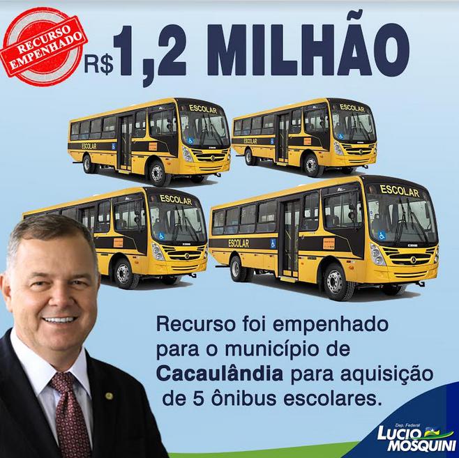 O dinheiro já está empenhado para o munícipio, e tão breve os veículos serão adquiridos, serão 05 ônibus escolares novinhos para ajudar no transporte de alunos.