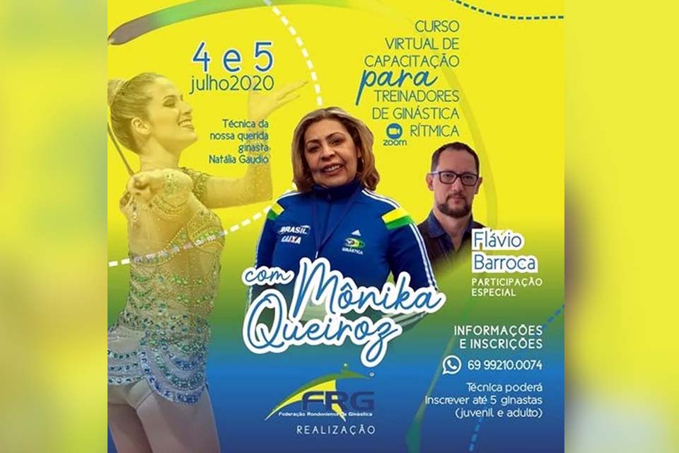 Mônika Queiroz, treinadora da ginasta olímpica da Seleção Brasileira, Natália Gaudio, montou um curso virtual de capacitação para treinadores de ginástica rítmica. As aulas estão marcadas para os dias 4 e 5 de julho. O convidado especial do curso virtual é Flávio Barroca.