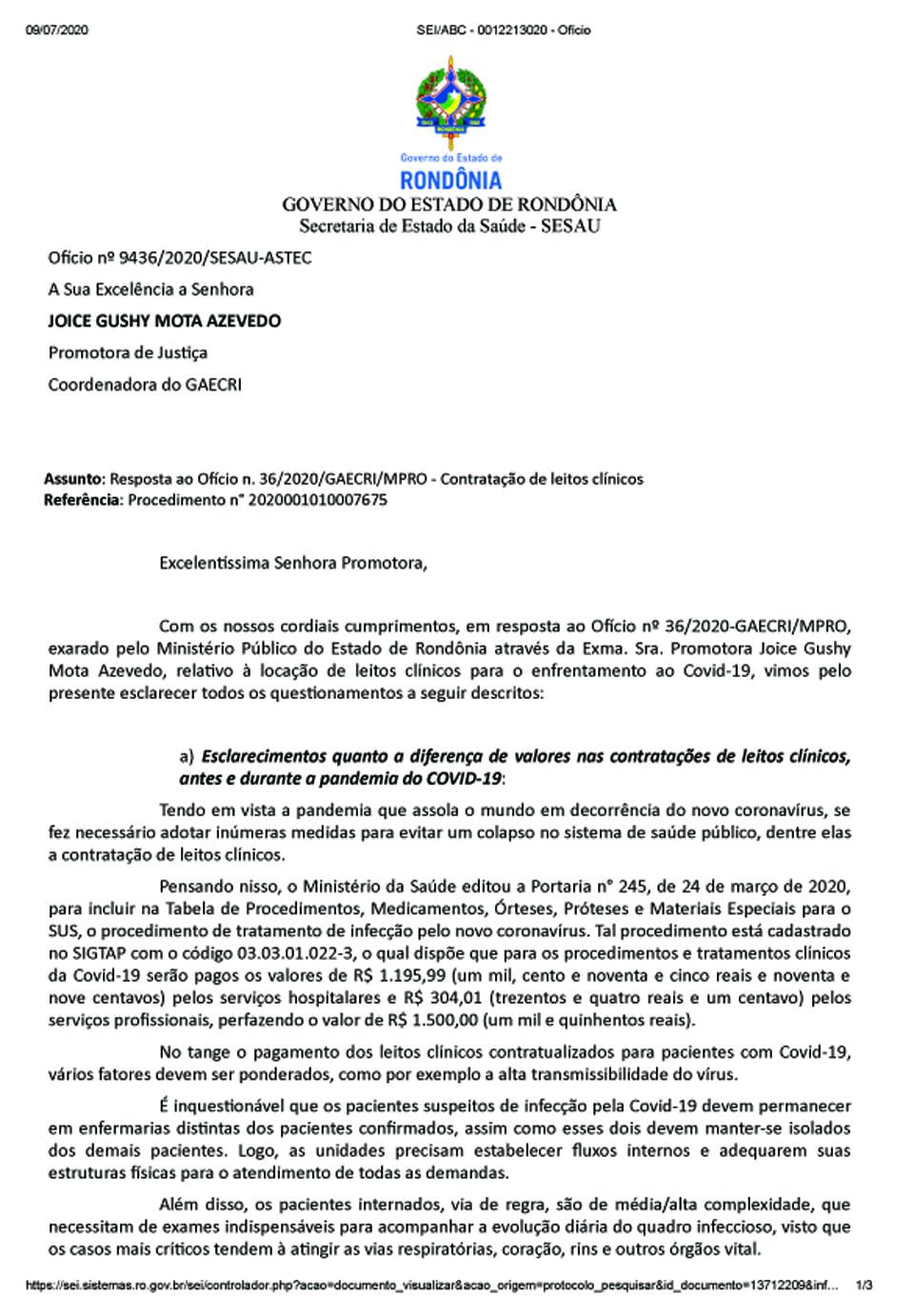 O Rondônia Dinâmica obteve, com exclusividade, as respostas encaminhadas à Força-Tarefa COVID-19 pelo titular da pasta; a responsável pelo instituto formalizado através do órgão de fiscalização e controle é a promotora de Justiça Joice Gushy Mota Azevedo.
