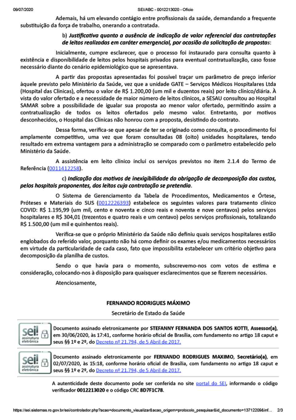 Porto Velho, RO – O secretário de Saúde (Sesau/RO) Fernando Rodrigues Máximo, médico, hoje em casa porque fora diagnosticado com o novo Coronavírus (COVID-19/SARS-CoV-2), respondeu a questionamentos patrocinados pelo Ministério Público (MP/RO) a respeito de valores custeados pelo Estado com leitos de UTIs [Unidades de Terapia Intensiva.
