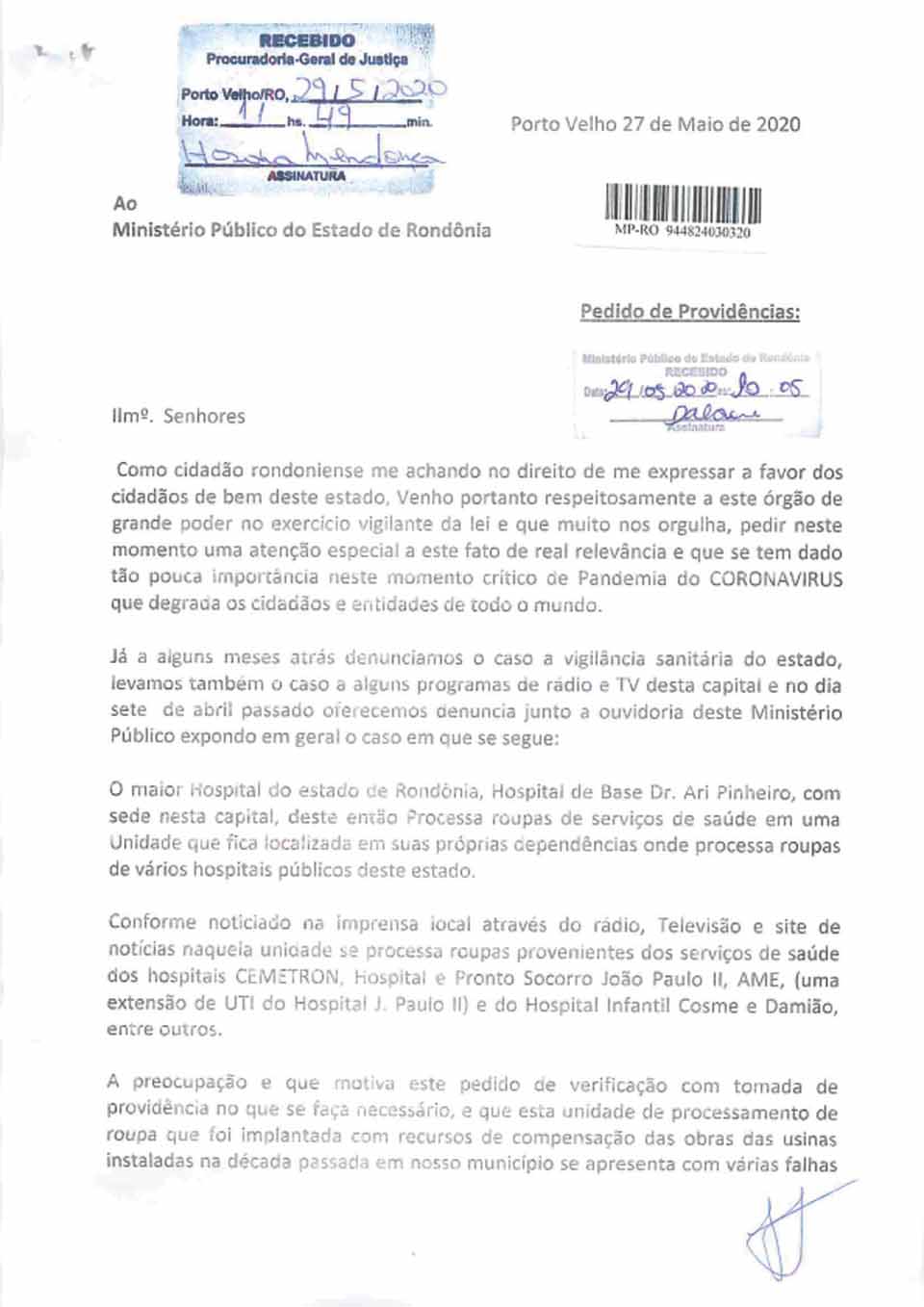 Agora, o Ministério Público (MP/RO) lida com outra questão, esta também referente ao Núcleo de Lavanderia e Costura do Hospital de Base, em Porto Velho.