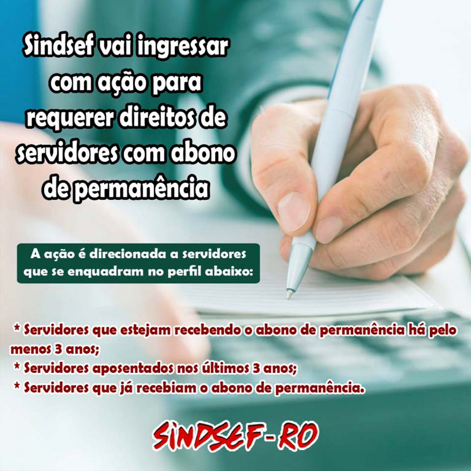 O Sindicato dos Servidores Públicos Federais no Estado de Rondônia – Sindsef/RO informa que estará ingressando com ação judicial requerendo o direito do reflexo do abono de permanência em verbas de caráter salarial. A ação é direcionada a servidores que se enquadram no perfil abaixo: