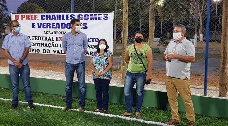 Com a presença do Prefeito Charles Gomes, o deputado federal Expedito Netto (PSD) participou da inaguração de um campo de futebol de grama sintética no município de Vale do Paraíso. A obra foi viabilizada através de uma emenda parlamentar.