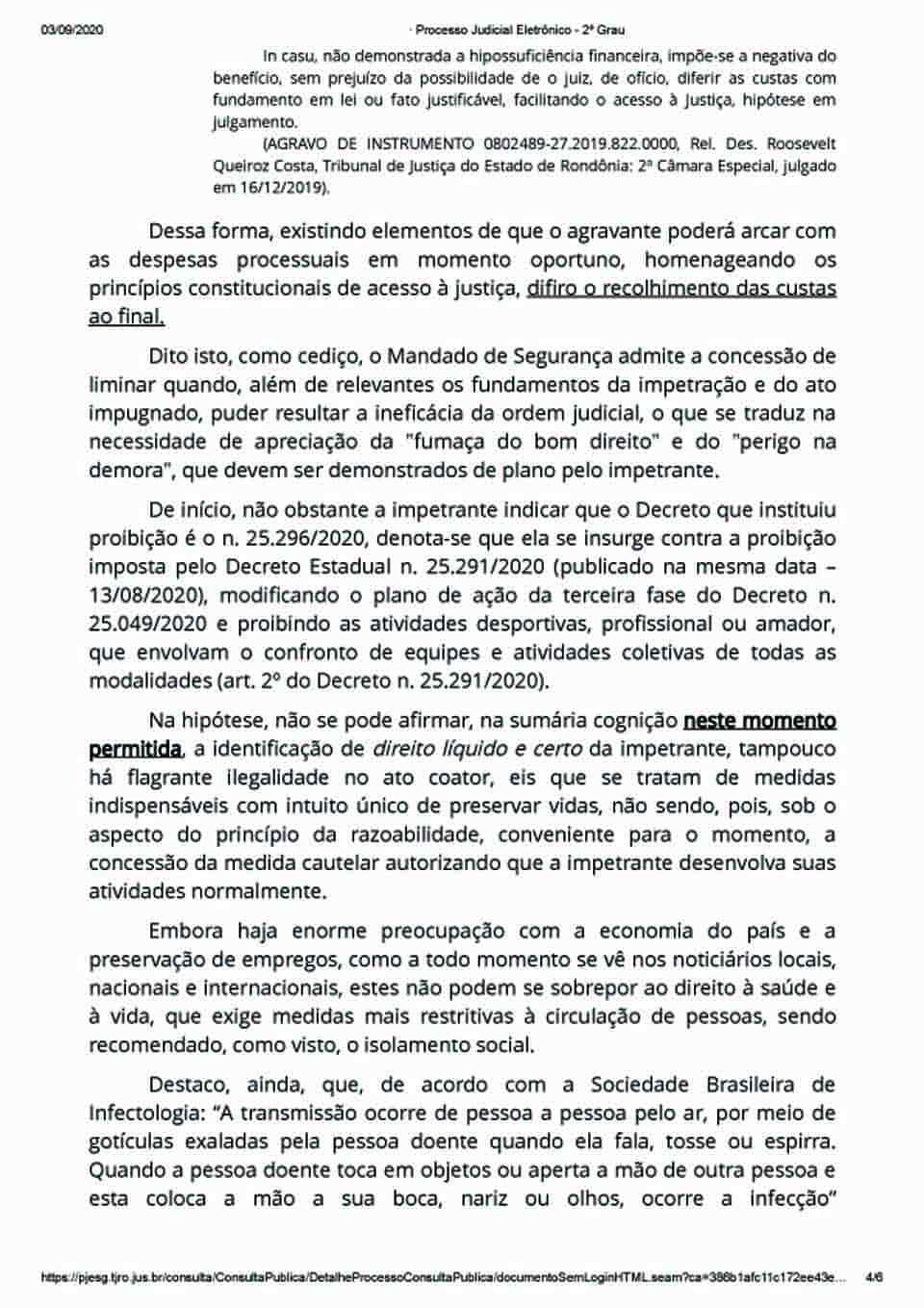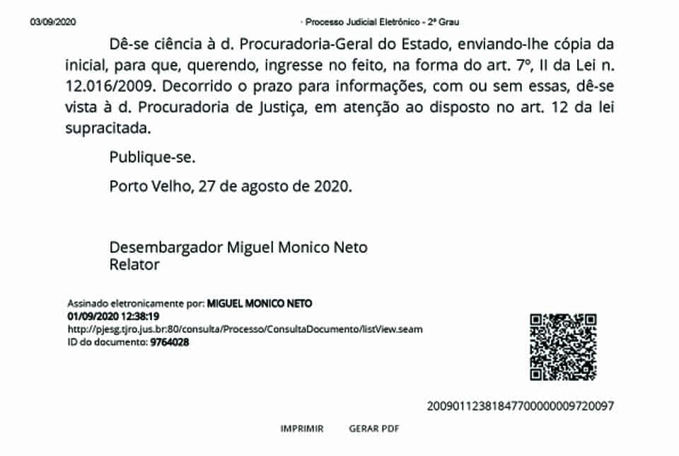 O desembargador Miguel Monico Neto, atuando pelo Tribunal Pleno do Tribunal de Justiça de Rondônia (TJ/RO), rechaçou a liminar em mandado de segurança anotando, entre outros pontos, o seguinte: