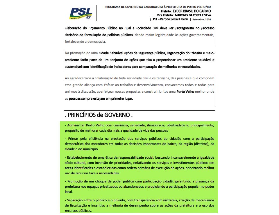 Desta feita é a vez do ex-colega de partido de Rocha, o Sargento Eyder Brasil, que, por sua vez, copiou partes significativas de um Plano de Governo usado por dois petistas em 2016.