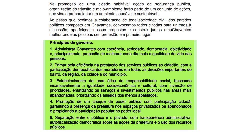 Eyder Brasil plagiou partes inteiras do Plano de Governo do PT de Chavantes, São Paulo / Reprodução-TSE