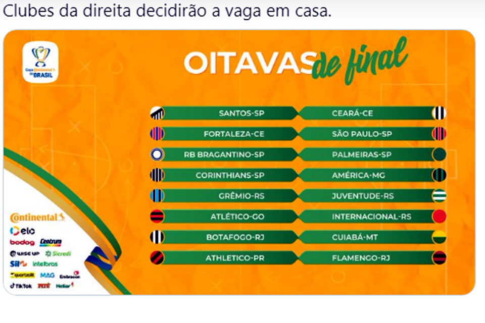 O atual campeão do Nordeste, Ceará, representante da região ao lado do arquirrival Fortaleza, vai ter o Santos de Cuca pela frente. Do Centro-Oeste, o Atlético-GO vai precisar superar o Internacional, do artilheiro Thiago Galhardo e do argentino Eduardo Coudet.