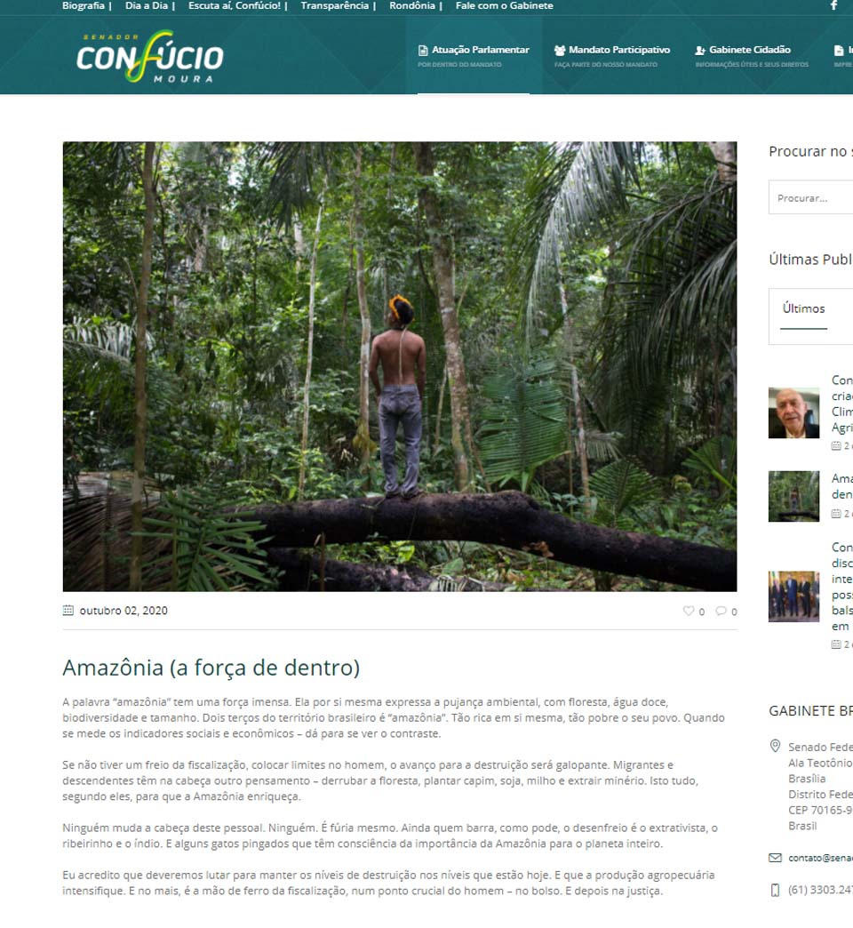 Porto Velho, RO – O senador de Rondônia Confúcio Moura, do MDB, veiculou um texto em seu blog homônimo intitulado “Amazônia (a força de dentro)”.