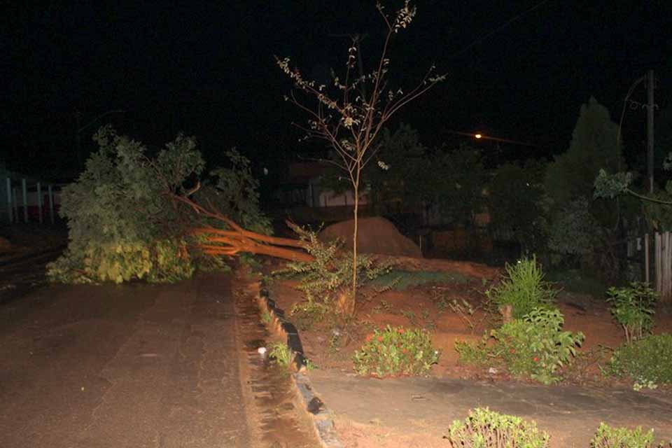 Um temporal com ventos fortes que caiu na noite deste domingo (04) em Jaru, causou estragos em residências, comércios, derrubou árvores e deixou diversos setores da cidade sem energia elétrica.
