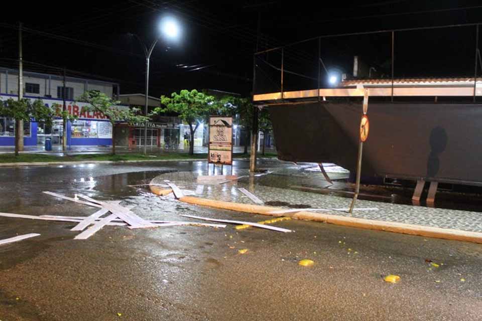 Na Avenida JK, a fachada de uma oficina e lanternagem desabou sobre a calçada, alguns comércios tiveram principalmente seus painéis danificados, os ventos fortes também derrubaram árvores, placas e arrancou o portão da Escola Raimundo Cantanhede, no setor 04.