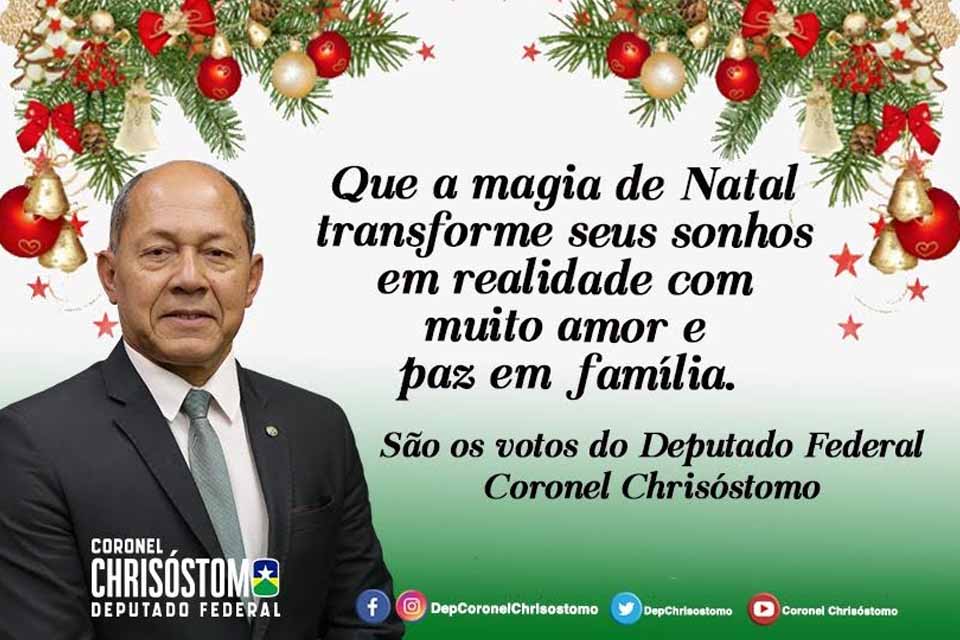 O Deputado Federal Coronel Chrisóstomo deseja aos rondonienses um excelente Natal, com muita paz e amor para todos os lares e famílias