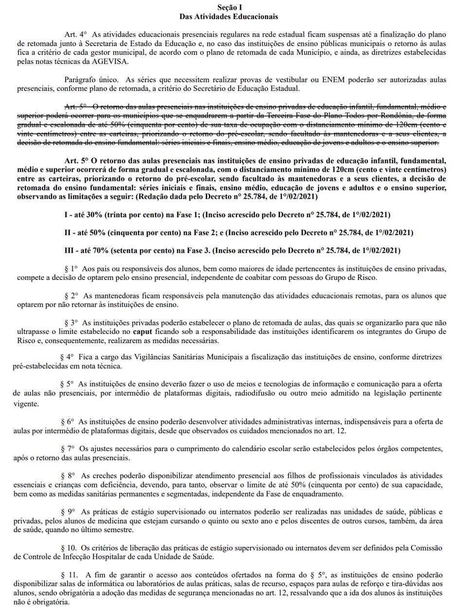 Anteriormente, só municípios enquadrados na Fase 3, a mais branda em termos de status de agressividade do Coronavírus de acordo com o Plano Todos por Rondônia, poderiam ensaiar o retorno físico aos colégios particulares.