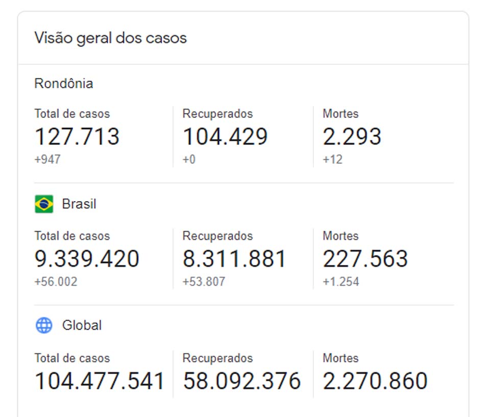 Até agora, Rondônia registrou 2.293 mortes por Coronavírus / Reprodução