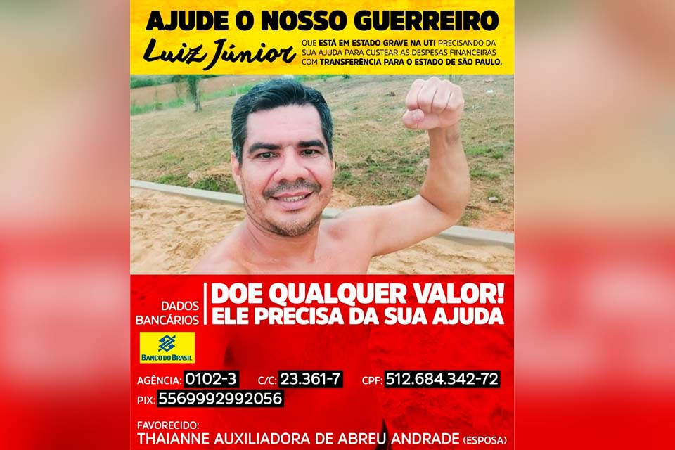 “Nossa estimativa é arrecadar em torno de R$ 230 mil para o custeio de insumos, remoção dele daqui para SP e equipe médica”, disse a companheira da Luiz Júnior.