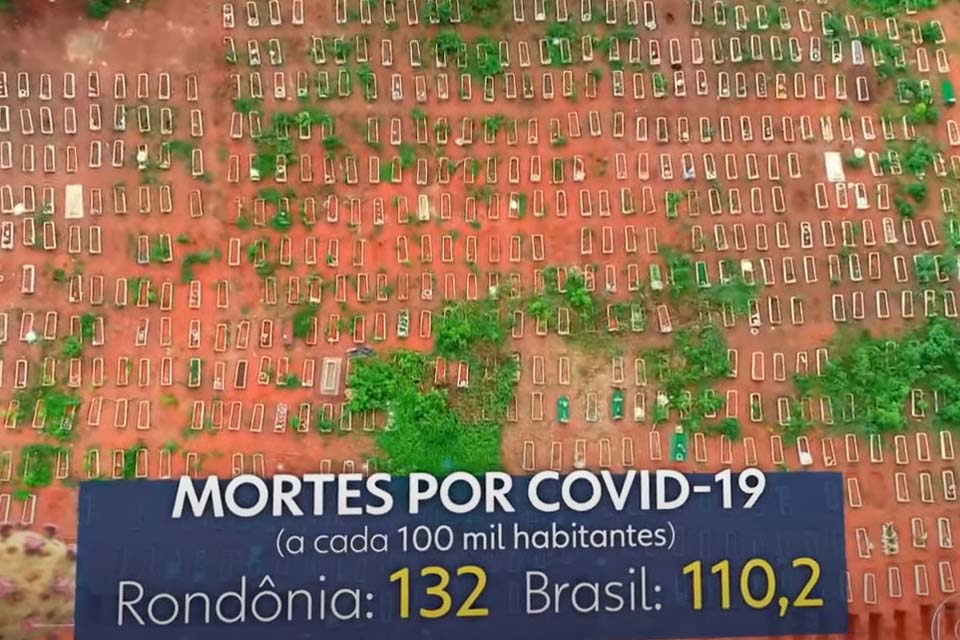 Em outro trecho, o noticiário pontua que a média de mortes por COVID-19 em Rondônia é maior do que a brasileira.
