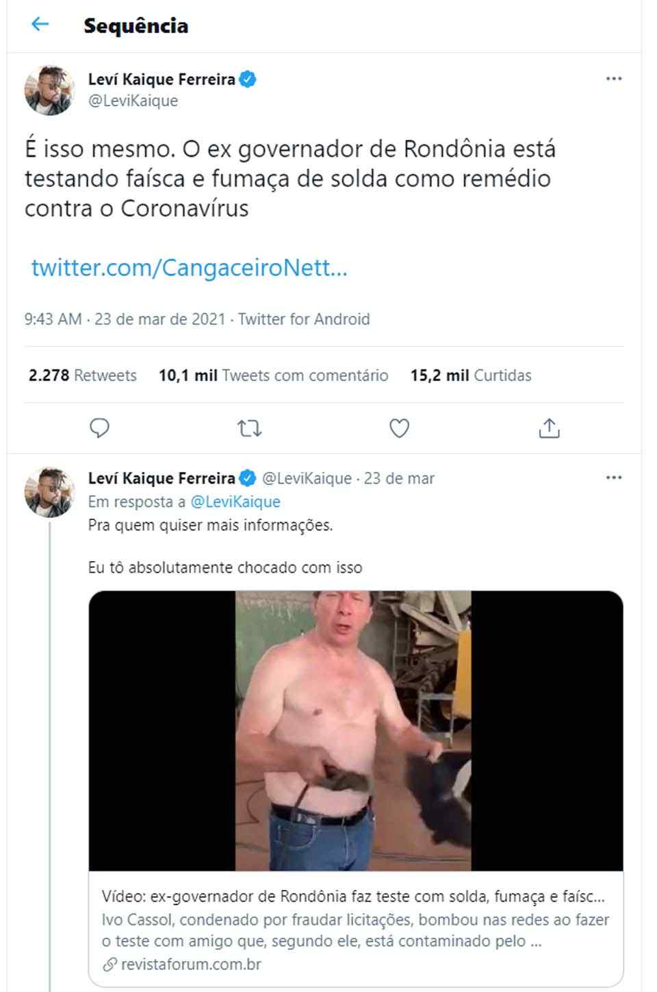 Ao “testar” um método bizarro e anticientífico contra o Coronavírus (COVID-19/SARS-CoV-2) usando a claridade da solda elétrica para “esquentar” determinado portador da doença, as imagens viralizaram e o assunto entrou nos trending topics no Twitter.