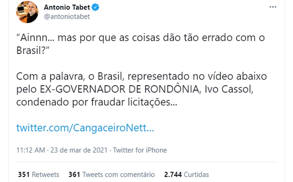 Porto Velho, RO – O ex-governador e ex-senador da República Ivo Cassol, do Progressistas, colocou Rondônia mais uma vez na rota da vergonha nacional nos noticiários Brasil afora.