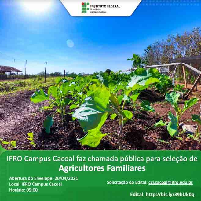 Chamada Pública de agricultores familiares visando futuras aquisições de Gêneros Alimentícios com recursos do PNAE para atender necessidades do IFRO-Campus Cacoal.
