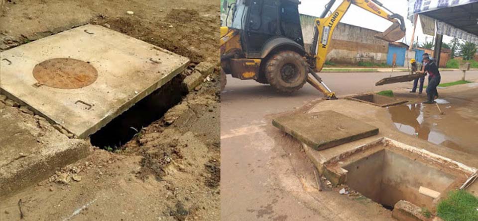 Os serviços de limpeza e desobstrução de bueiros foram realizados nas ruas Benedito Inocêncio, em frente a Rua Beira Sul, bairro Três Marias, e no bairro Flamboyant, na região leste da cidade.