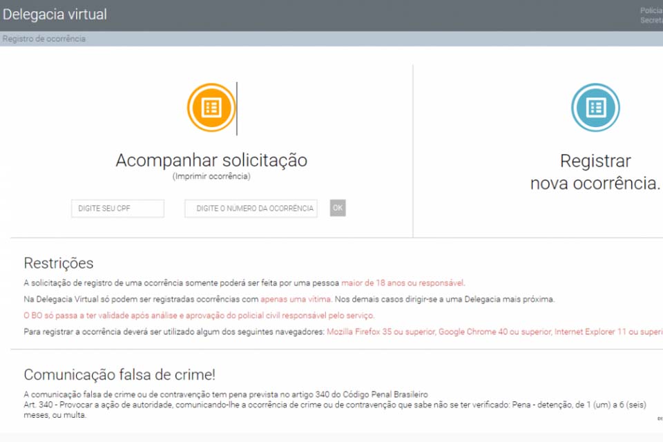 Ele explicou que a Delegacia Virtual não substitui, no todo, a Delegacia Física, que deverá e estará apta a receber todas as denúncias, especialmente as que envolvem crimes graves como os homicídios, roubos com violência, estupros, sequestros, etc. Diferentemente deste, o atendimento virtual deve ser acionado sempre para as ocorrências de menor complexidade, que não envolvam violência, como perda de documentos ou de um fato ou ato para resguardar um direito do comunicante.