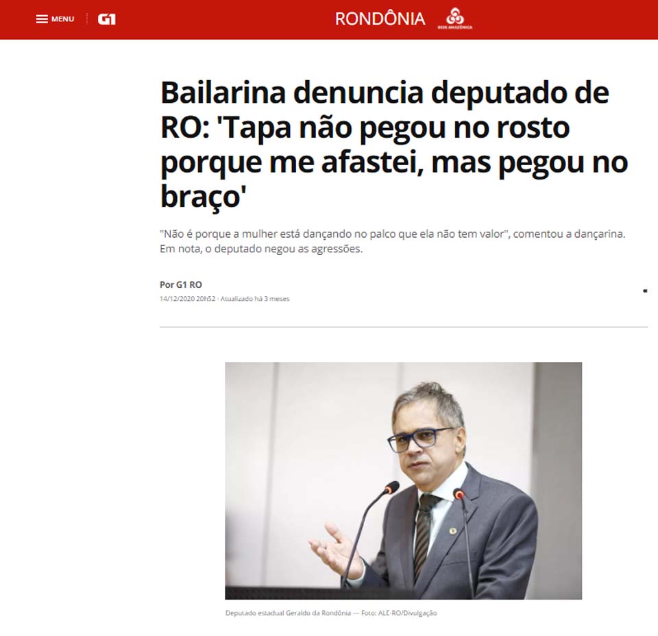 01) 14/12/2020 – Foi acusado de agressão por uma bailarina