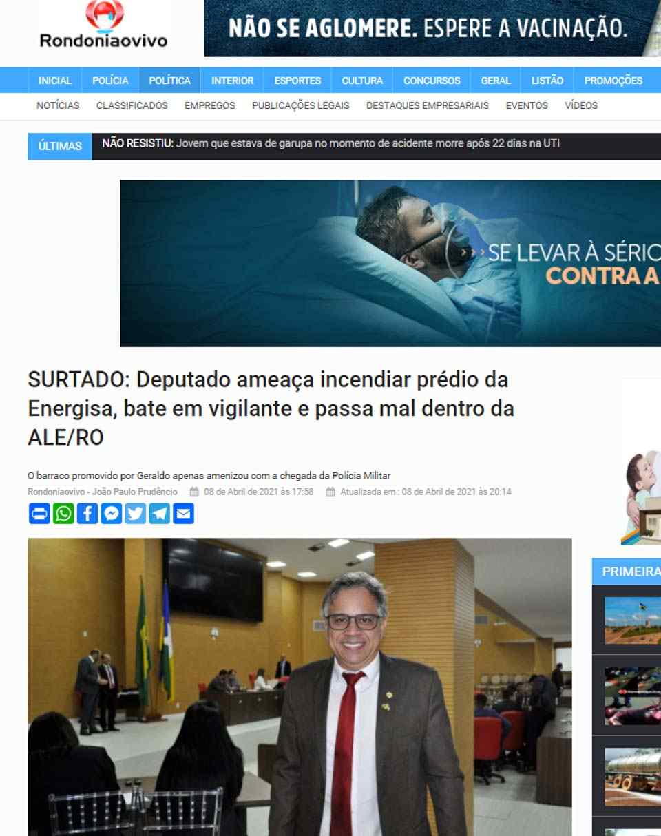 Entretanto, só do final de 2020 para cá, Geraldo da Rondônia que, pasmem!, é membro do Conselho de Ética no Legislativo, foi protagonista de uma série de problemas que residem justamente na alçada do caráter.
