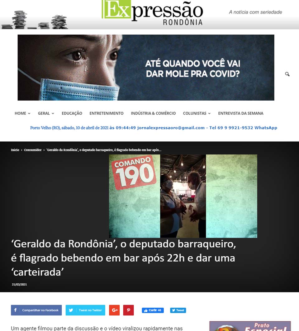 Porto Velho, RO – A sociedade rondoniense precisa falar sobre o comportamento de José Geraldo Santos Alves Pinheiro, conhecido politicamente como Geraldo da Rondônia, do PSC, hoje no auge dos seus 53 anos de idade.