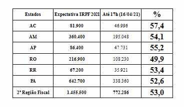 Na 2ª Região Fiscal (AC, AP, AM, PA, RO e RR) 756.619 contribuintes cumpriram a obrigação com o fisco federal.