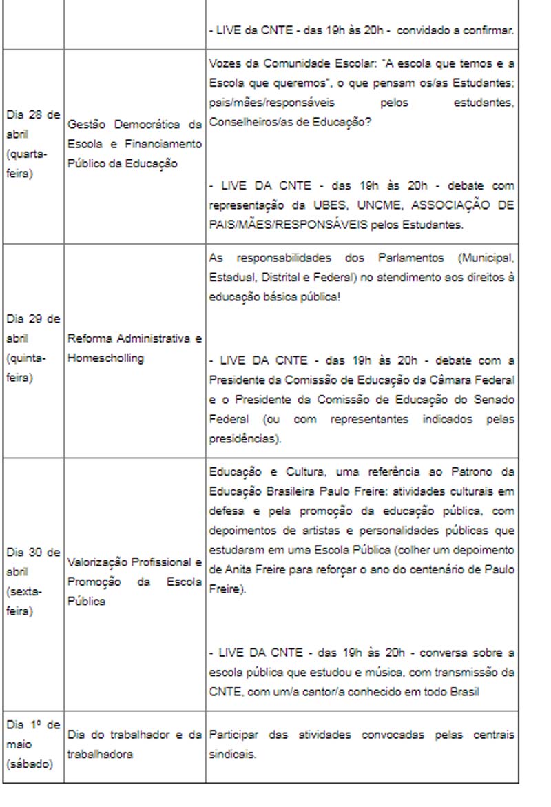 VEJA A PROGRAMAÇÃO COMPLETA DA CNTE:
